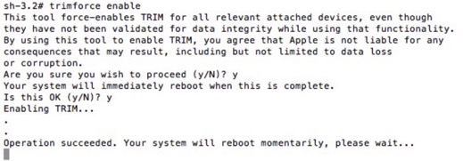 This is clearly great news. No OS level hacks are required, or third party software, just a simple one-time, one-line command in the Terminal will switch on Trim on any Mac running El Capitan or later, for ever.